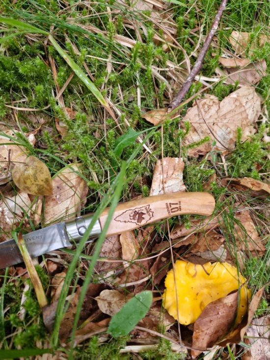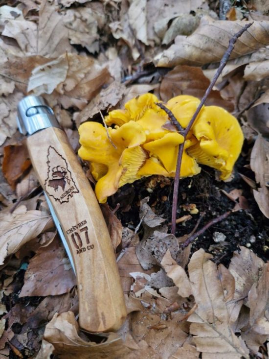 Couteau de poche, manche en bois d'Olivier, lame acier inoxydable, blocage de la lame.